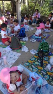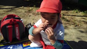たくさん歩いて遊んだあとのお弁当とおやつは特別美味しそうに食べていました