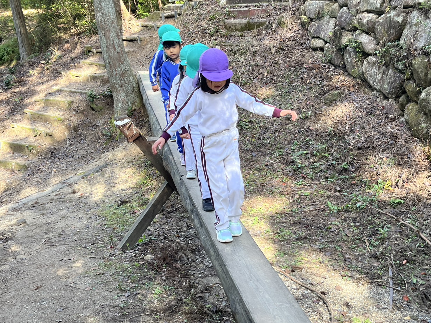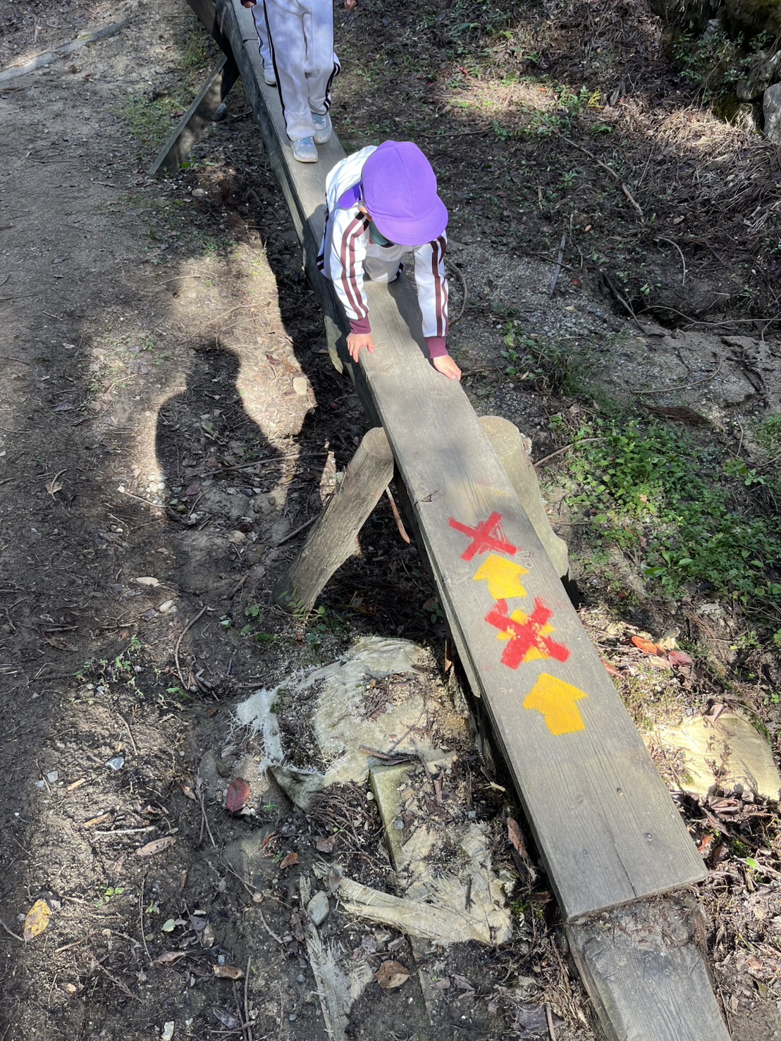 一本橋は怖い子も多くゆっくり、ゆっくり渡っていました